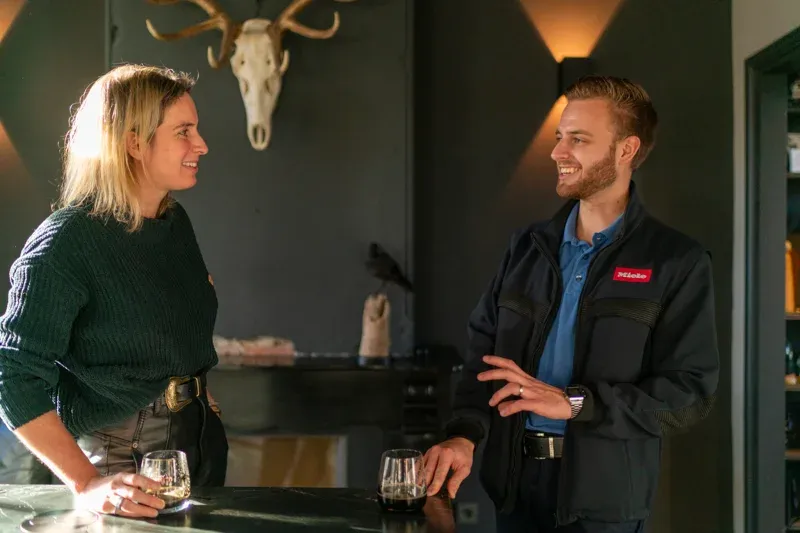 Si vous le souhaitez (et vous le souhaitez !), vous pouvez accompagner l'un de nos techniciens de service sur le terrain pendant une journée. Vous pouvez également passer une journée dans l'un de nos centres d'expérience Miele ou au siège social à Mollem.