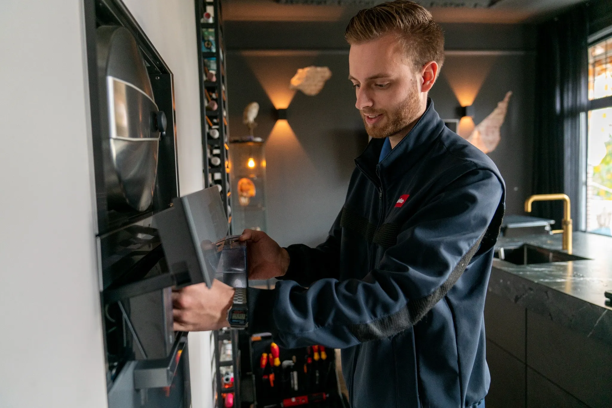 Le Field Service Domestic Appliances (B2C) est notre plus grand département et compte environ 60 techniciens. Ces techniciens sont formés de manière experte pour établir le bon diagnostic, effectuer la réparation correspondante du four, de la plaque de cuisson ou de la machine à laver, par exemple, et donner les conseils d'entretien nécessaires. Et tout cela avec le sourire ! Car notre objectif est d'offrir une excellente expérience au client.